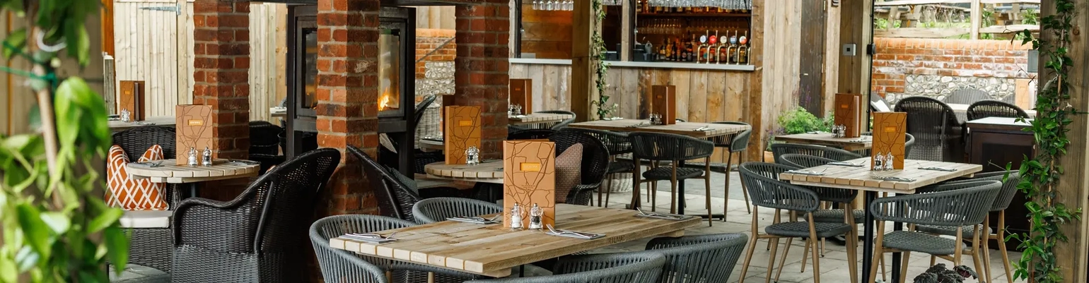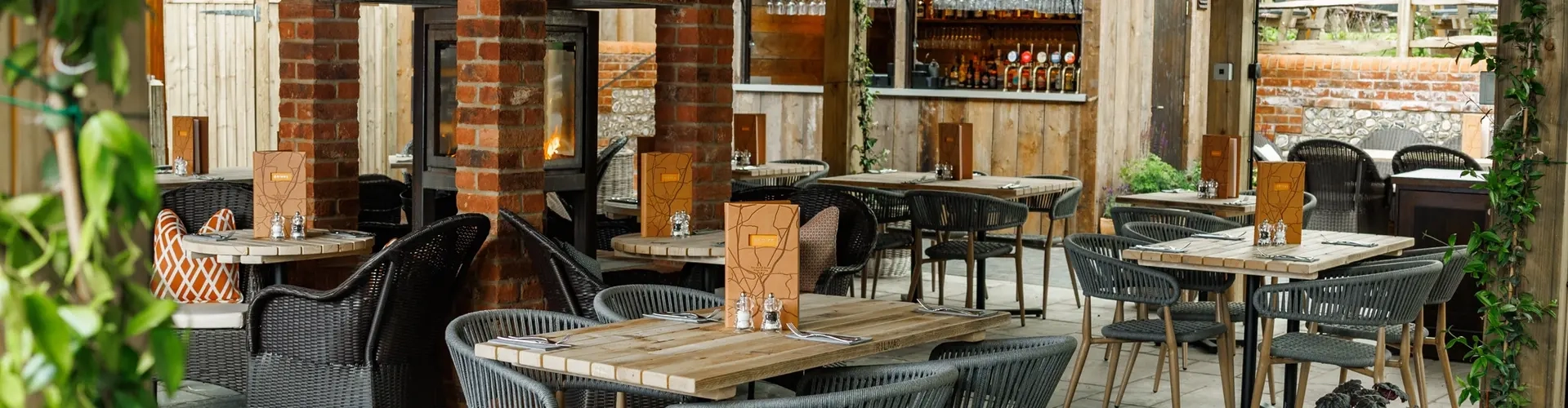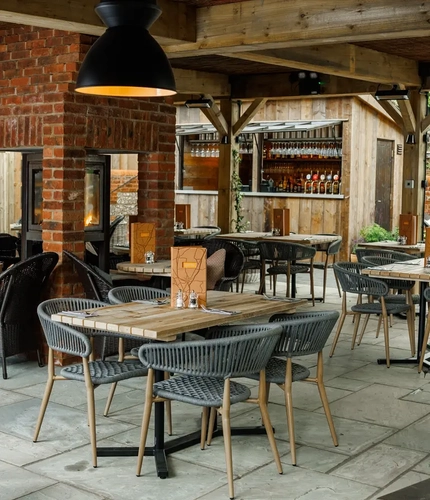 Step into our inviting beer garden, where outdoor comfort meets seasonal delight. Designed to be enjoyed all year round thanks to its wooden pergolas covered in twinkling fairy lights, cosy firepits promising warmth and relaxation even on the chilliest evenings, and spacious open terraces. The perfect spot to savour the seasons.